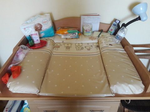 У нас комод с пеленальным столиком, сейчас только откидная часть убрана стоит как просто комод, как ребеночек родится прицепим обратно