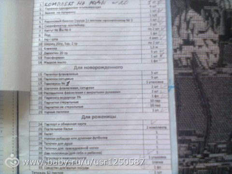 Вот это был мой список. Увы и ах у нас ВООБЩЕ НИЧЕГО не выдают. Правда я из Украины.У меня список в родзал был 22 пункта… медикаменты и т.д., а еще списки на хоз.нужды и т.д.