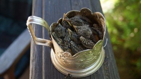 К нам удоды прилетали и белки приходили… пожрать, зачем же еще то? и еще птичка в бесседке гнездо свила и там теперь вот такие малыши))