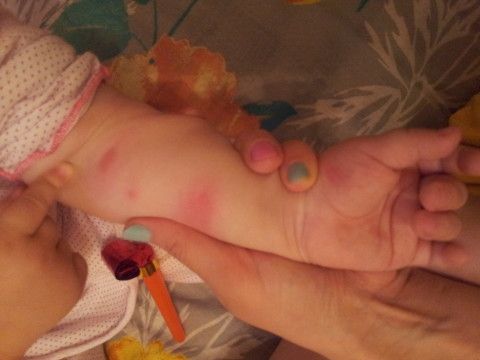 Нам 7 числа делали первый акдс, 2 дня была температура ночью 38,3/37, 3. Утром когда проснулась я заметила на щеке красное пятно, она начала сильно чесать,, позже когда собирались гулять увидела на руке такие же пятна(шишки). Что это может быть? Не реакция ли на прививку? Я думаю может быть это укусы комаров. Просто до этого нас кусали, появлялись шишки, но эти огромные. Фото внизу