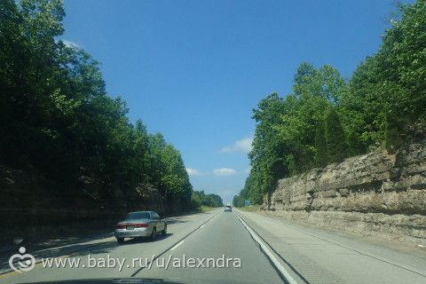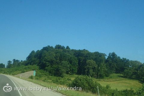 Выехали мы пораньше, чтобы успеть обойти все все. Погода радовала умеренным солнышком и отсутствием духоты, а природа отличалась от центральной Индианы, тем что появились небольшие горы (муж сказал — холмы)))), вообще от средней полосы России (как я уже писала) — не отличить местами).