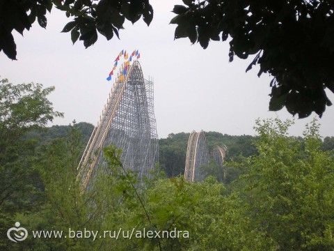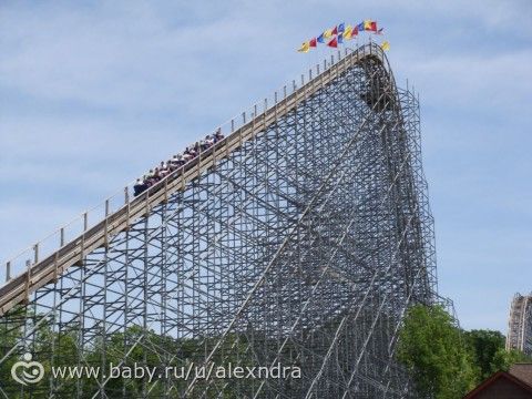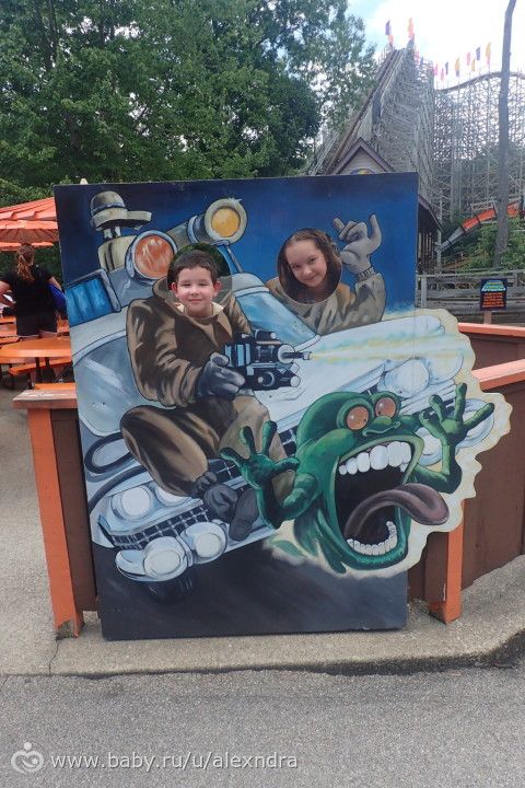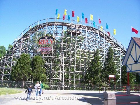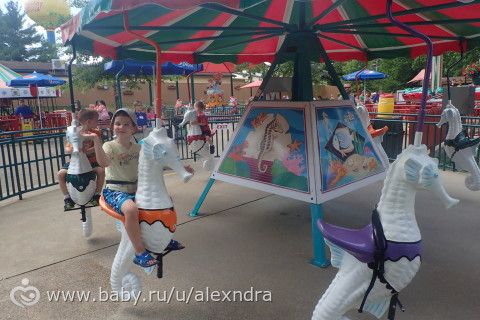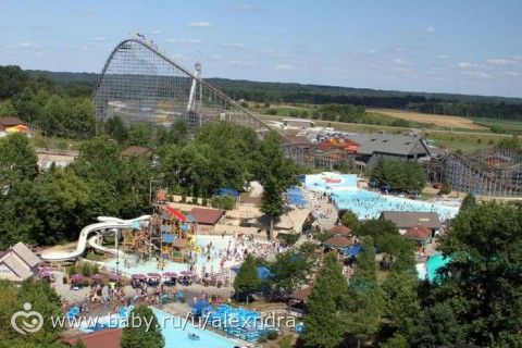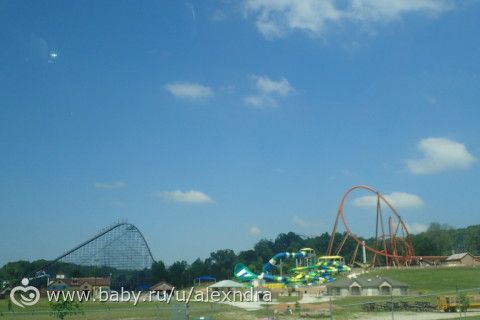 Решила рассказать и об этом приключении — пару недель назад ездили в Holiday World Park & Splashin' Safari Water Park на юге Индианы. Это парк атракционов и аквапарк объединенные в один — хочешь катайся, хочешь купайся))). Ехать туда из Индианаполиса часа три, мы еще взяли Дейва (брат мужа), чтобы Ангелине не было скучно, потому что на головокружительные горки, и я и муж можем только смотреть))). Мне по настоящему становится плохо, а мужу просто не нравятся ощущения от полета в мертвых петлях).