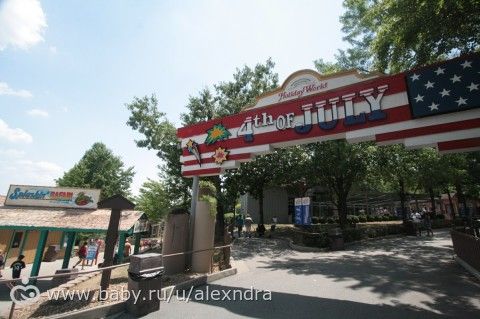 Следующая зона была — 4 июля (День независимости) — понятно, все в цветах американского флага. Несколько концертных площадок, где играли местные группы, кстати и музыка и вокал оставляли очень приятное впечатление). Там можно покататься на настоящем ретро-паравозе и ретро-автомобильчиках. Везде прогуливались ростовые куклы. Но мы в этой зоне не задержались, там хорошо посидеть в тени и перевести дух перед новыми приключениями.