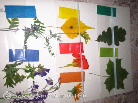Гербарий сделали в обычном альбоме. Делала в основном я. Называла какие листья какого дерева, называла цветочки. Дочка смотрела.