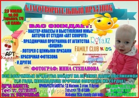 Так хочется помочь!!! Билеты на 23 есть в детских центрах. Если у себя в Жасмине мы всё продали, то в центрах билеты пока идут слабо. Праздник будет очень классный!!! По билетикам разыграют много-много сертификатов!!! Скорее всего, призов всем хватит!!!
