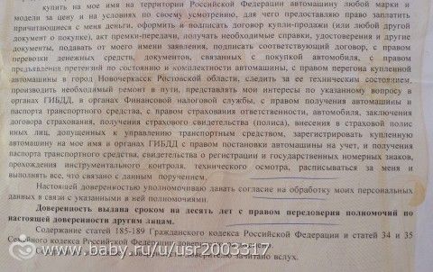 В прошлом году оформляли нотариальную доверенность на меня. Эта доверенность давала мне право на покупку автомобиля на имя мужа, постановку на учет, страхование и т.д. Так что никто лишних вопросов не задавал, все оформили. Муж был в командировке.