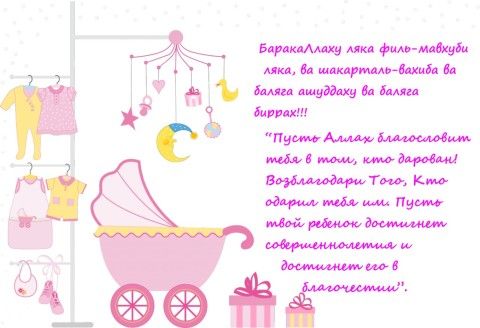 Да благословит Аллагь тебя в том кто был дарован тебе, да воздашь ти Дарителю благодарностью, да достигнет он полной зрелости и да будет дано тебе увидеть проявление его почтительности!☺️?