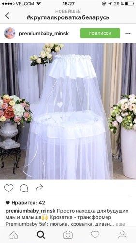 Кроватка 400$ матрасик 50$, а комплект 9 в 1 — 130$, собрали только вот пока в люльку круглую, муж собирал вроде не сложно не долго собирал. Хотела заказать в России в вк но там предоплата по карте которой у меня нет но не знаю там фирму и там можно было все взять по российским деньгам за 20 тыс