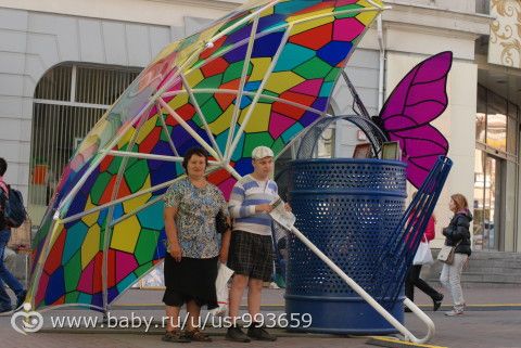На Арбате очень красиво, сейчас там много интересных декораций стоит — домики, зонтики, бабочки, арочки.