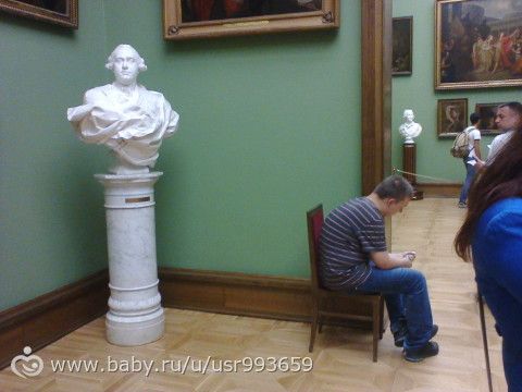Потом начал «шуметь» немного, Инна с ним ускорилась в просмотре, тетеньки музейные по очереди стали подходить спрашивать: «А что это он у вас так шумит?» Инна отвечала: «Это он радуется так, у него аутизм, не простой ребенок...» Потом Миша стал интересоваться и картинами и особенно скульптурами.