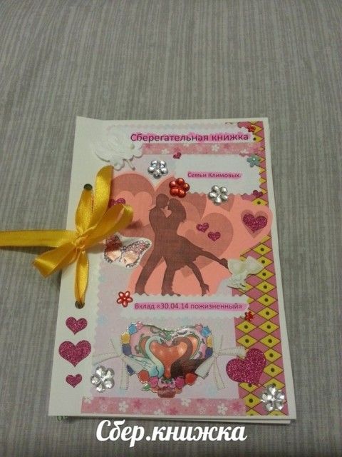 Сестре делала сберкнижку, брату сладкий конверт. Можете попробовать