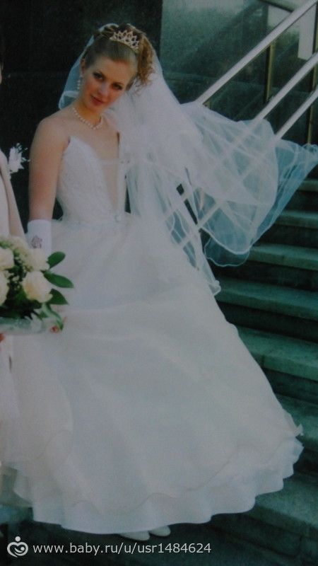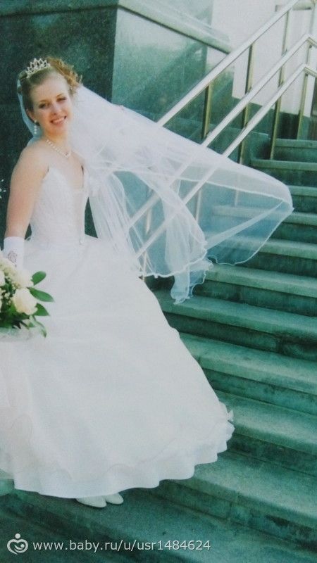 Но самой неожиданностью стало моё платье!!! Мы с будущей свекровью объездили кучу магазинов и салонов, но ей ничего не нравилось!!! Я была согласна на любое! Оно ж всё равно на один день только! Но нет. Ей прям было неугодить. Нашли одно, но она всё равно была не в восторге. Мы оставили задаток и ушли. И тут она мне предлагает пошить самим!!! Как это самим??.. Оказалось, что мама прекрасно шьёт. Решили, что если не получится, то задаток мы оставили и платье всё равно будет ждать меня! Так вот платье она всё- таки пошила!!! САМА!!! И ничем не хуже магазинных!!! Фасон мы придумывали втроём: я, Дима и его мама. Она говорила: «Говори как хочешь! Вот как тебе нравится? Я тебе сделаю как захочешь!» А я не знаю как мне нравится и чего я хочу)) Единственное, чего мне на тот момент реально очень хотелось — это длинная длинная фата!!! Чтобы за мной аж шлейфом тянулась по полу!!! Как у принцессы!!! Глупо? А она мне такую сделала!!! Счастью моему не было предела!!! Пышное, белоснежное, верхняя юбка слегка золотистая, всё украшено камнями (стразами) и длинная, длинная фата!!! А чтобы фата не пачкалась мама предложила, чтоб у меня были два маленьких пажика, которые будут носить мою фату: это были Димины двоюродные сестрички.