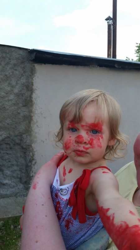 Мы на даче )) доча лопает ягоды и наш опыт с пальчиковыми красками: