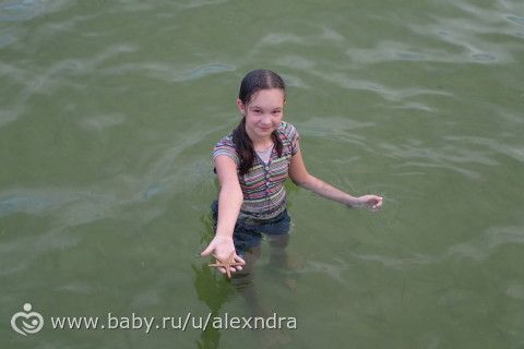 В общем смотреть с моста в воду очень увлекательное занятие, что только не увидишь), Ангелина увидела морскую звезду и не раздумывая прыгнула за ней в воду. После восторгов и подробного рассмотрения звезда была возвращена на дно, а Ангелину отправили переодеваться.
