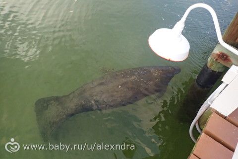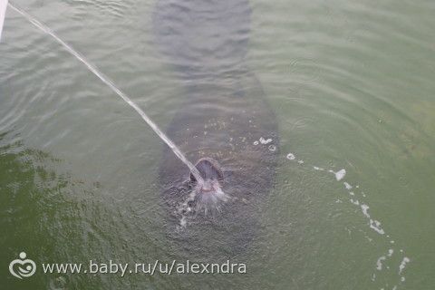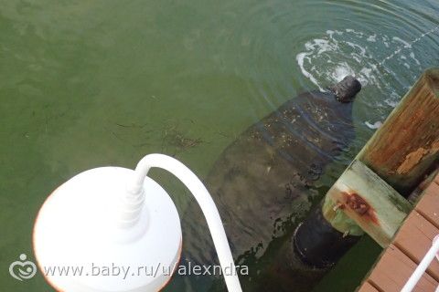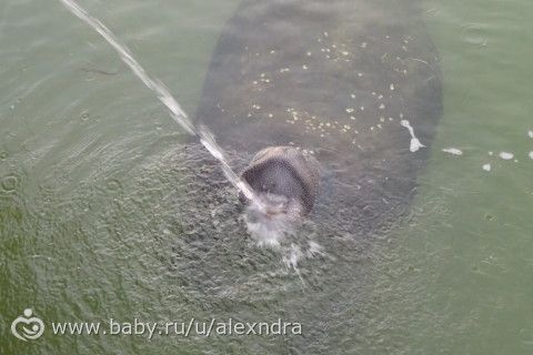 Но самое главное зрелище нас ждало впереди — к нам приплыла морская корова, такое чувство что приплыла целеноправлено, потому что ребята подростки, которые тоже были в это время на мосту, стали кричать «дайте ей попить» и опустили шланг с пресной водой вниз). Коровка с удовльствием пила и уплывать не спешила). Вид конечно у нее величественный, один гигантский хвост-плавник чего стоит и в тоже время она невероятно грациозна. Когда ребята спустились поплавать вместе с ней, она пару раз изящно вильнув хвостом ушла на глубину). А мордочка у нее настоящее свинное рыльце))).