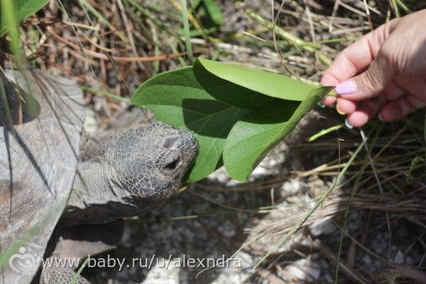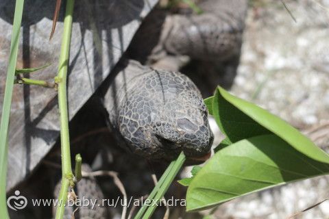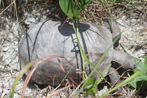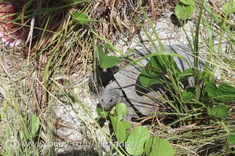 Этакий грациозный бочонок на вид метра 3-4 длиной и весом наверно больше 200 кг).Конечно морская корова затмила все, но сегодня по дороге из бассейна мы встретили большуууую черепаху, которая не испугалась наших восторгов и даже согласилась поесть из рук, абсолютно невозмутимое создание).