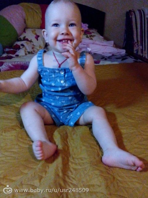 Умелки и развитие: бегает; прыгает; скачет на игрушке-прыгунке; собирает пирамидку и сортеры; открывает/закрывает все ящики, двери и шкафы-особенно купе; складывает свои игрушки по ящикам до которых может дотянуться-я потом удивляюсь таким «сюрпризам)); хлопает в ладоши-удалось научить только приговаривая-»аплодисменты Юнне!"-ладушки не прокатывали