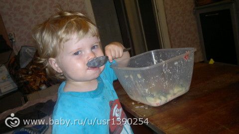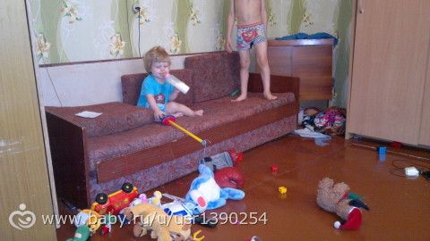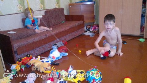 Пока я кроила и шила, мои сорванцы в прямом смысле слова стояли на ушах!!! Это Нечто!!! И рыбачили, и мячик кидали, В общем полная свобода действий)) МАМА МЫ СОШЛИ С УМА!!! Хорошо, что у нас 1-этаж, соседи бы иначе повешались. Дочка довольно уверенно стала держать ложку, правда путает лево и права, но это мелочи))) научимся! Еще бы так уверенно на горшок ходила)) А то все мимо и мимо))