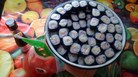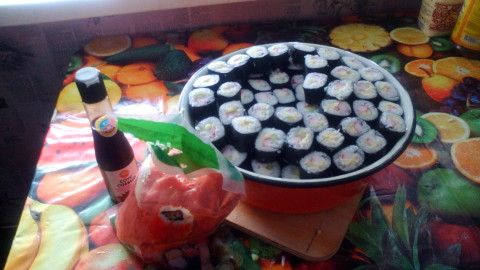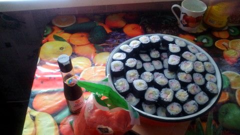 Обязательно)) вот рис сварили, муж делает роллы))) крутит))