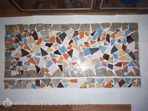 Решили выложить порожек у входной двери мозаикой из битой плитки. Вот что получилось