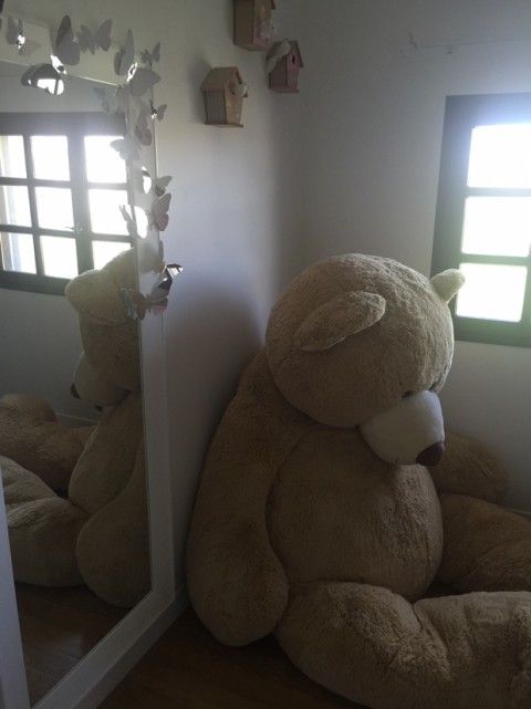 На первом фото хорошо видно и кроватку и декор, а на втором — огромного медведя)