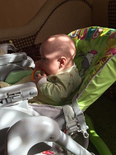 Купила лидер Кидс 6900₽. Короче, фото прикладываю как он в нем лёжа сидит))))) пока убрала в красный уголок. Три положения спинки и 5 уровней высоты. Дочь в простом деревянном столе-стуле и ничего. Нам 4,5 месяца.