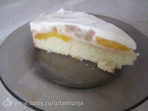 делала по этому рецепту, персики свежие, тесто влажный бисквит