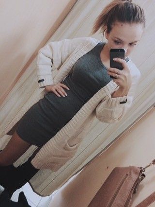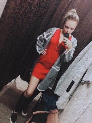 Я сейчас еду с магазина купила обычное платье в обтяжку и одно слегка свободное и тёплый кардиган,