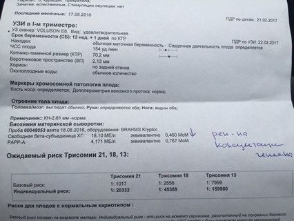 Девочки расшифруйте!!! реву не могу???в ЖК ни че не сказали, успокаивала что они всех на консультацию посылают… это ладно… но анализ то плохой(((( к генетику записали аж на 11 октября!!! я ж вся изведусь…