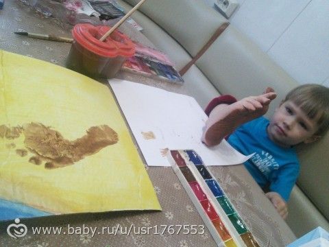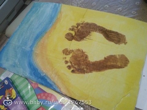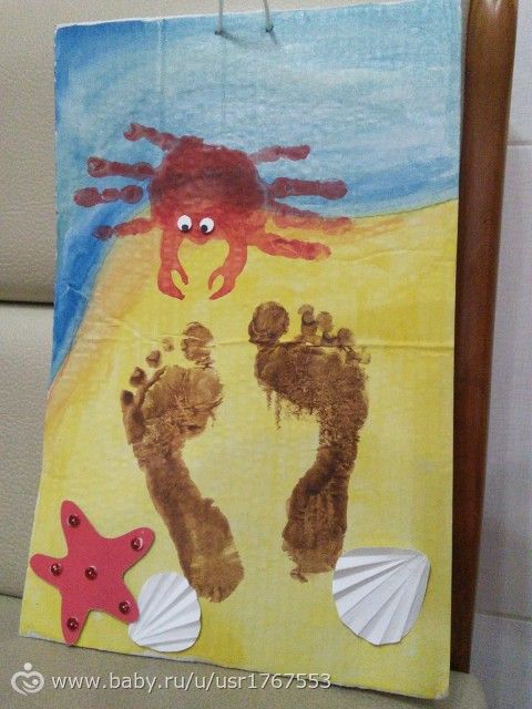 Сейчас дедушке вот такую поделку морскую, прям на скорую руку, можно сказать. Идею ножек и моря взяли с инета и дополнили любимой темой — крабом из ладошек. Фото процесса..