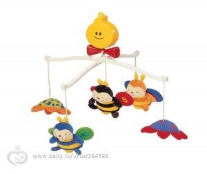 У нас Фишер прайс, я довольно игрушки мягкие, 2 уровня громкости, есть пульт, 3 категории музыки, сверху светятся звезды которые светят на потолок! но он дорогой!