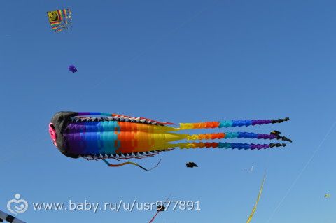 Главное — небо раскрашенное воздушными змеями разных форм, цветов и размеров.