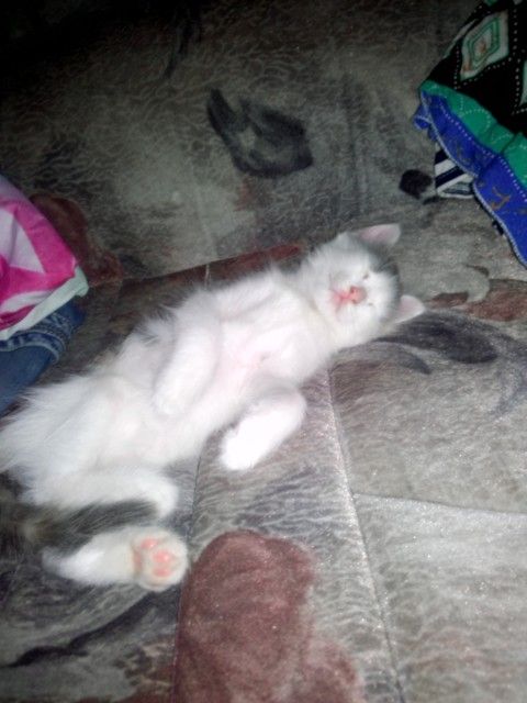 Всем приветик))) Сегодня с дочкой вышли на прогулку ув дели мальчик котят раздает подошли посмотрели и в результате завели вот такое чудо малышку)))