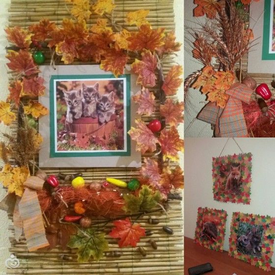 Вот такие я сделала панно. На даче оставался кусок забора из соломы, собирали летом колоски, желуди. И вот получились такие картинки. Размер по высоте 120см и 60 см в ширину. В реальности они ярче...