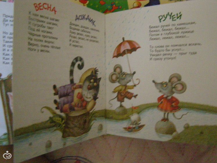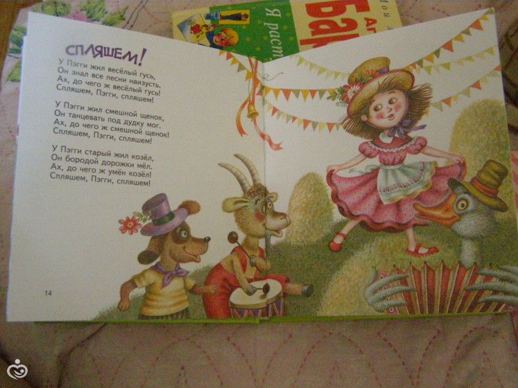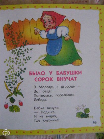 Текста в книжке не мало. Количество стихов очень даже солидное, это меня в особенности подкупило. А то бывает книга толстая, а стихов раз-два и обчелся. Да, в них чаще всего красивые, крупные иллюстрации, но я не любитель книг, в которых проиллюстрирована каждая строчка. Где там место фантазии?))