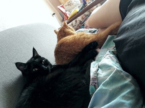 Я как домой не приду меня эти кошки атаковать начинают) ластятся и мурлыкают) черномазенький у нас дикошарик, не особо ласковый, а на последних сроках стал приходить и о пузень треться и под него морду зарывать когда на бок ложусь)))
