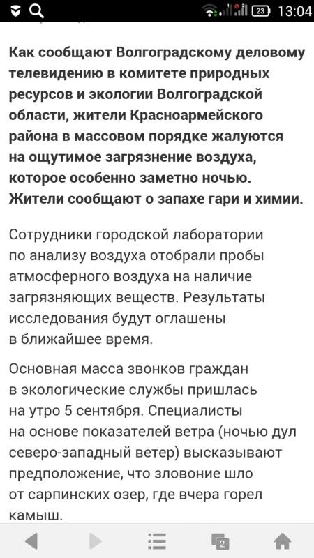 Камыш это прикрытие. Вчера свекровь в очередной раз звонила экологам, они говорят, что нужно звонить пракуратору! Говорят, что они брали пробы на заводе и всё ок. А это в полях что-то вредное жгут, их искать надо. Поэтому в прокуратуру.