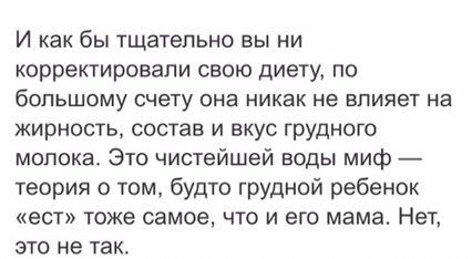 Меня так запугали в первую Б, что месяц ела одну молочку и в конце концов в стены врезаться стала (это конечно не только от питания). Но как потом добрая женщина объяснила (дай Бог ей здоровья) и матери, и ребёнку нужны силы для роста, для восстановления, а женщины начинают себя ограничивать в пит веществах, витаминах и минералах… А потом у кого-то волосы выпадают, у кого-то зубы и проч катаклизмы с организмом начинаются.