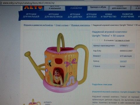 Кровать-качалка светлого дерева с выдвигаюшимся ящиком для детских вещей (2980 руб.) здесь же можно укомплектовать ортопедическим матрасом (670 руб.), пологом-балдахином и бортом-охранником (680 руб.) и кронштейном под этот балдахин (197 руб.). Кровать на колесиках «Вероника» стоит 2300 руб… Если предпочитаете сосну, кроватка на колесиках обойдется в 1080 руб., а если дуб — то в 4920 руб. Все это — российского производства. Широко представлены предметы по ухожу за новорожденным. Здесь продается, наприер, пустышка-термометр за 145 руб. (Китай) или пустышка-погремушка всего за 15 руб. (Сирия). Пустышек и сосок из силикона и латекса ценой от 27 руб. (Франция, Германия, Италия, Китай, Россия) и бутылочек из пластика и стекла здесь великое множество. Электронагреватели «Бэби-комфорт» (Франция) за 1573 руб. и 1968 руб. или хотя бы китайский подогреватель бутылочки за 388 руб. просто необходим в детском хозяйстве. Пригодится и ночник, реагирующий на детский плач, и силконовая анатомическая ложка (Италия, 97 руб.) и, конечно, музыкальные игрушки-подвески по 262 руб. (Германия) или по 198 руб. (Китай)