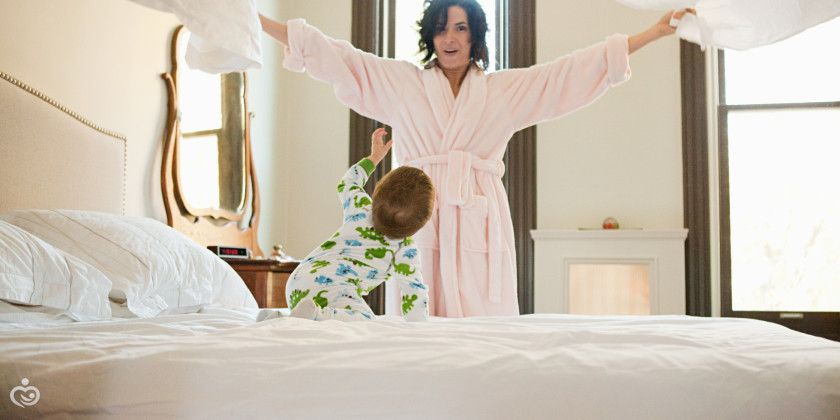 ну сегодня я заправила ее уже вернувшись с садика, завтра заправлю сразу, утром стараешься тише ходить, чтоб сын поспал, а потом бегом его собираешь, вот и получается что не сразу убираю..