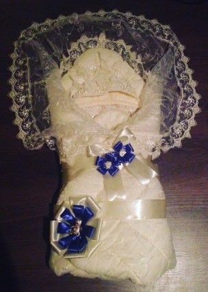 На выписку конверт, купила только конверт, а банты сама делала) вот не знаю пока что одеть на него под конверт… Я не из тех кто на один раз покупает, поэтому специальный набор на выписку не хочу покупать за 2-3 тыщи. Наверно просто одену посимпатичнее бодик какойто то и все, а шапочки нарядные есть в комплект с конвертом) спасибо)
