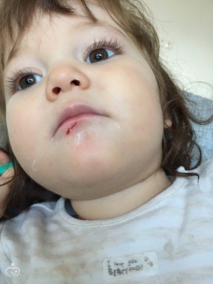 Наверно, все мамы рано или поздно проходят через это. Наступил видимо период падений и ранений ?Сегодня вот и у нас произошло это несчастье ?Зашли домой после прогулки, я переодела Амиру, обула ей домашние туфельки и отпустила. Она нашла на полу свою любимую лошадку, схватила её и пошла в другой конец комнаты, а я отвернулась, чтобы самой переодеться. Не прошло и минуты, слышу стук и сразу крик дочки. Я подлетела к ней, сначала решила, что она головой ударилась о кровать? Но когда я её подняла у меня чуть сердце не остановилось ? Весь подбородок в крови. Помчалась в ванную, пытаюсь помыть, но только хуже становится, у дочки вся кофта да и у меня оказались в крови. Ужас в общем. В итоге кое как салфеткой убрала. Оказалось, что она ударилась и насквозь пробила зубами под губой, кошмар (