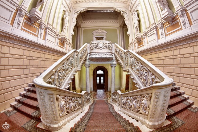 а в нем вот есть красивая лестница, на которой можно фоткаться? И кто знает, сколько в нем залов для регистраций?