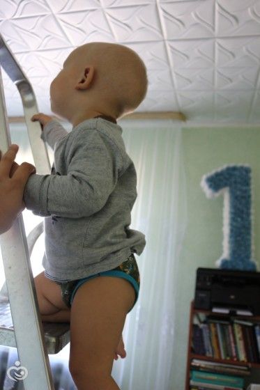 В общем налазились мы по стремянке. Она у меня чуть больше 2-х метров. Он залазит на верхнюю площадочку и давай там танцевать.