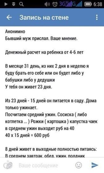 Это как мой бывший. Алименты 8 с коп, но нму все кажется, что деньги не на ребенка идут)