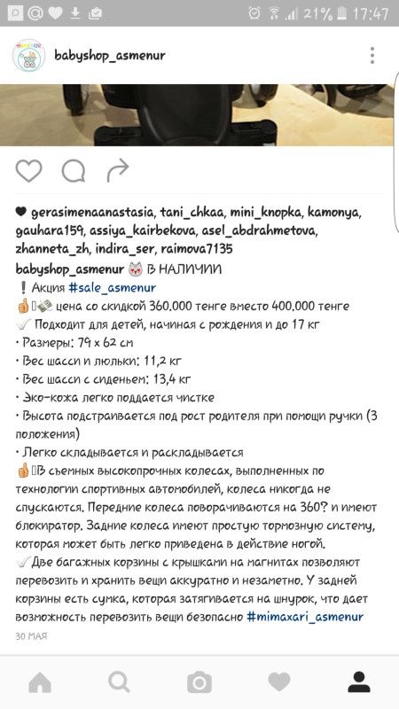 Дорогие мамочки! У кого такая коляска Mima Xari, поделитесь отзывом, впечатлениями. Очень хочу Ее, ???о других и речи не может быть! ??? и есть ли представитель в Алматы? Хочу вживую пощупать и покатать.