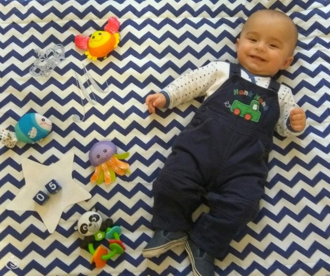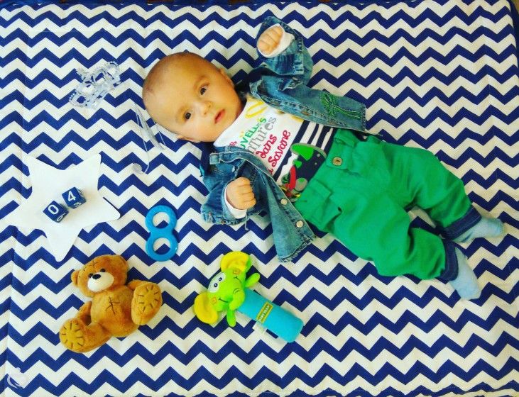 Ну и фото Марка в 4 ( а то забыла выставить) и 5 месяцев)
