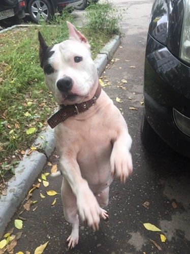 У меня стаф девочка 8 лет ей уже, дочь с ней лучшие подружки, сын пока только смотрит и улыбается ей, я довольна что дети растут с собакой