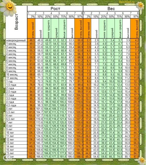 Все дети тут поделены на 7 групп по росту. Все логично, высокий ребенок в 6 месяцев и в год будет выше остальных.