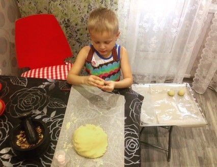 Всегда принимает участие) вот тут он тесто месил сам и лепил все персики сам)